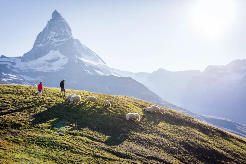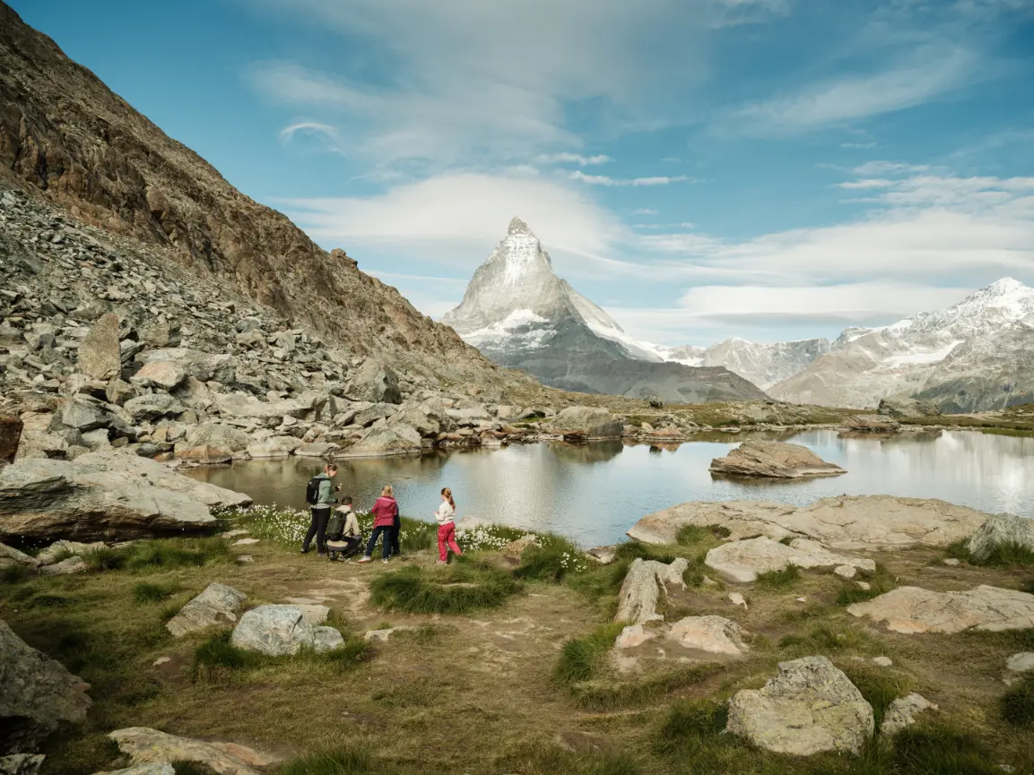 Een andere route met prachtig uitzicht op de Matterhorn is de Riffelsee-wandeling. Deze korte maar indrukwekkende wandeling brengt je naar het Riffelsee, een bergmeer dat bij helder weer een perfect spiegelbeeld van de Matterhorn toont. Deze wandeling is eenvoudig en toegankelijk, maar biedt een van de mooiste uitzichten in de regio.